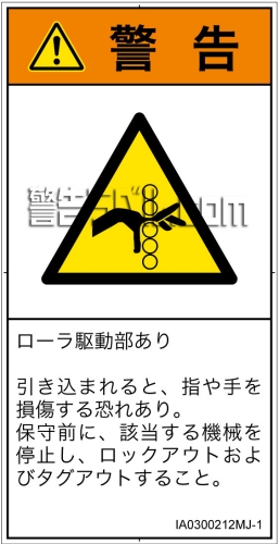 危険の種類: 機械的な危険  引き込み(ローラ)