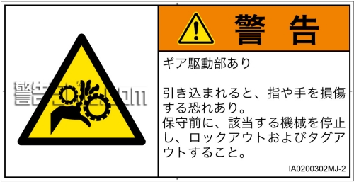 保守前に、該当する機械を停止し、ロックアウトおよびタグアウトすること。