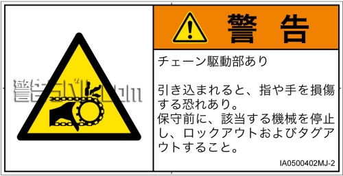 危険の種類: 機械的な危険  引き込み(チェーン)