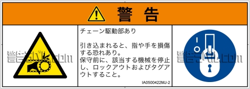 危険の種類: 機械的な危険 引き込み(チェーン)