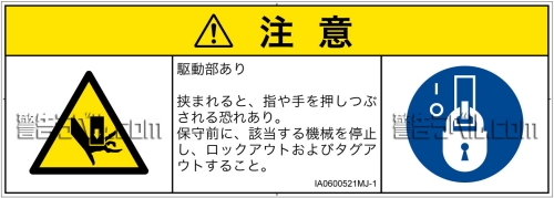 保守前に、該当する機械を停止し、ロックアウトおよびタグアウトすること。