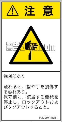 保守前に、該当する機械を停止し、ロックアウトおよびタグアウトすること。