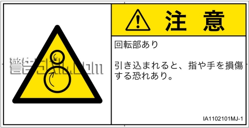 危険の種類: 機械的な危険  引き込み(逆回転ローラ)