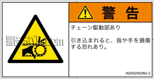 危険の種類: 機械的な危険  引き込み(チェーン)