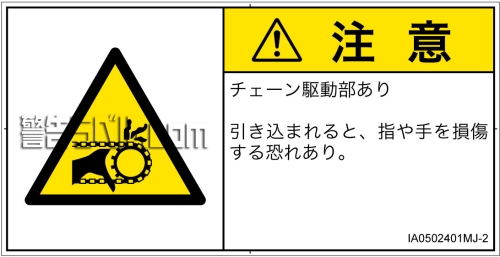 危険の種類: 機械的な危険  引き込み(チェーン)