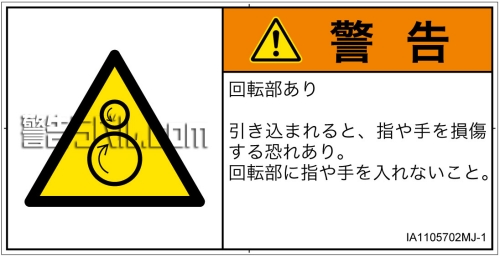 危険の種類: 機械的な危険  引き込み(逆回転ローラ)
