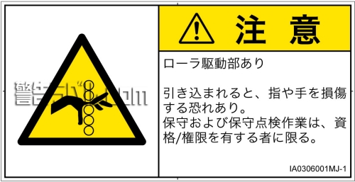 危険の種類: 機械的な危険  引き込み(ローラ)