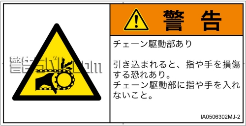 危険の種類: 機械的な危険  引き込み(チェーン)