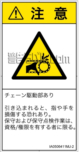 危険の種類: 機械的な危険  引き込み(チェーン)