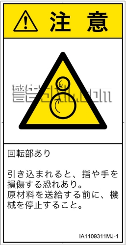 危険の種類: 機械的な危険  引き込み(逆回転ローラ)