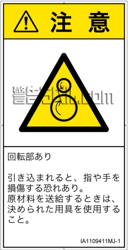 危険の種類: 機械的な危険  引き込み(逆回転ローラ)