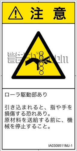 危険の種類: 機械的な危険  引き込み(ローラ)