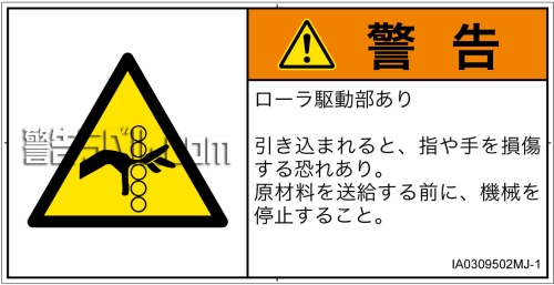 危険の種類: 機械的な危険  引き込み(ローラ)