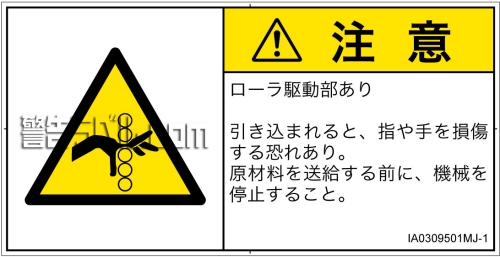 危険の種類: 機械的な危険  引き込み(ローラ)