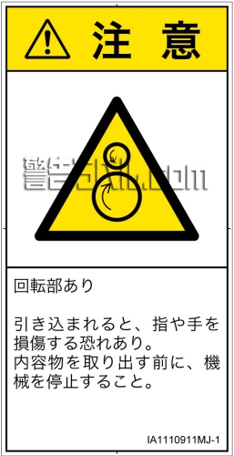 危険の種類: 機械的な危険  引き込み(逆回転ローラ)