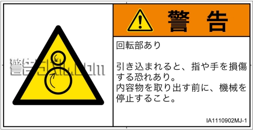 危険の種類: 機械的な危険  引き込み(逆回転ローラ)