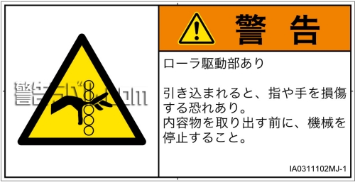 危険の種類: 機械的な危険  引き込み(ローラ)