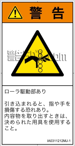 危険の種類: 機械的な危険  引き込み(ローラ)
