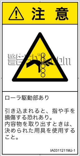危険の種類: 機械的な危険  引き込み(ローラ)