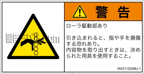 危険の種類: 機械的な危険  引き込み(ローラ)