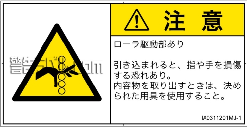 危険の種類: 機械的な危険  引き込み(ローラ)