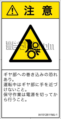 危険の種類: 機械的な危険  引き込み(ギア)