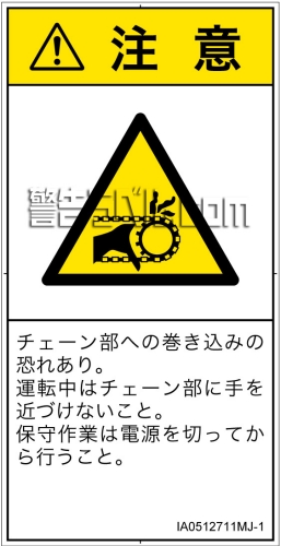 危険の種類: 機械的な危険  引き込み(チェーン)