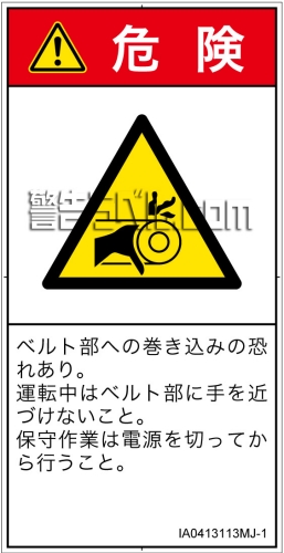 危険の種類: 機械的な危険  引き込み(ベルト)
