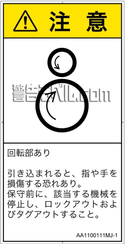危険の種類: 機械的な危険  引き込み(逆回転ローラ)