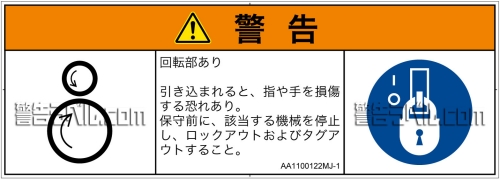 保守前に、該当する機械を停止し、ロックアウトおよびタグアウトすること。