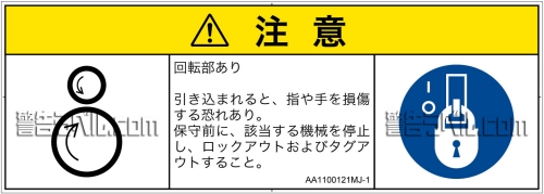保守前に、該当する機械を停止し、ロックアウトおよびタグアウトすること。