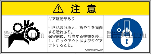 保守前に、該当する機械を停止し、ロックアウトおよびタグアウトすること。
