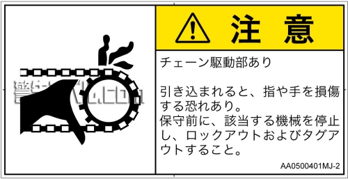 危険の種類: 機械的な危険  引き込み(チェーン)