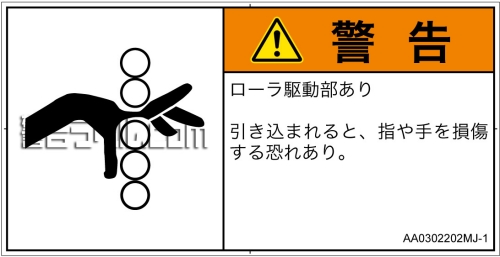 危険の種類: 機械的な危険  引き込み(ローラ)