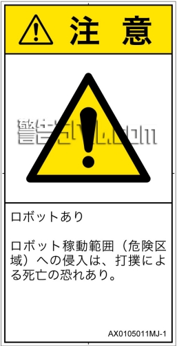 ロボット稼動範囲(危険区域)への侵入は、打撲による死亡の恐れあり。