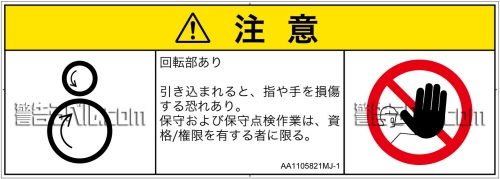危険の種類: 機械的な危険  引き込み(逆回転ローラ)