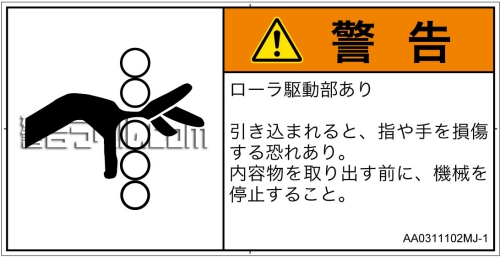 危険の種類: 機械的な危険  引き込み(ローラ)