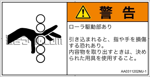 危険の種類: 機械的な危険  引き込み(ローラ)