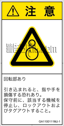 保守前に、該当する機械を停止し、ロックアウトおよびタグアウトすること。