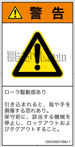 危険の種類: 機械的な危険  引き込み(ローラ)