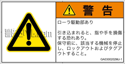 危険の種類: 機械的な危険  引き込み(ローラ)