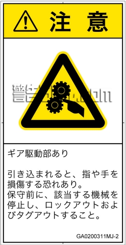 危険の種類: 機械的な危険  引き込み(ギア)
