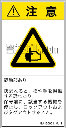 保守前に、該当する機械を停止し、ロックアウトおよびタグアウトすること。