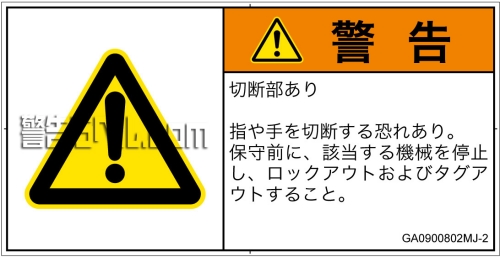 保守前に、該当する機械を停止し、ロックアウトおよびタグアウトすること。