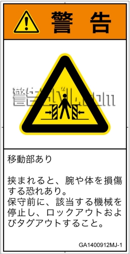 保守前に、該当する機械を停止し、ロックアウトおよびタグアウトすること。