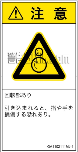 危険の種類: 機械的な危険  引き込み(逆回転ローラ)