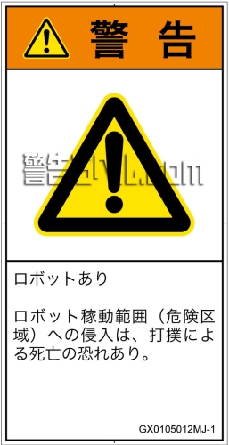 ロボット稼動範囲(危険区域)への侵入は、打撲による死亡の恐れあり。