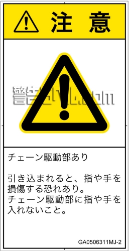 危険の種類: 機械的な危険  引き込み(チェーン)