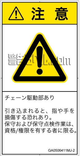 危険の種類: 機械的な危険  引き込み(チェーン)