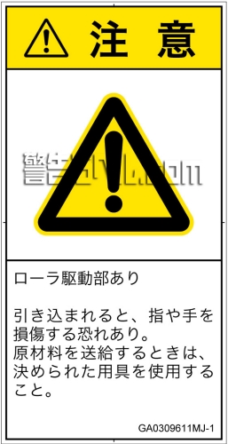 危険の種類: 機械的な危険  引き込み(ローラ)